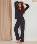 Women’s long-sleeve shirt pyjamas with matching trousers. Supersoft hand feel. Lapel collar with pearlised buttons down the centre front. Grown-on button stand. Piping detail at lapel collar down centre front button stand sleeve and hem cuff. Elasticated waistband with functional drawcord. Back neck tape. Made from 100% recycled polyester. Tag-free for easy rebranding. Ivory is suitable for sublimation.